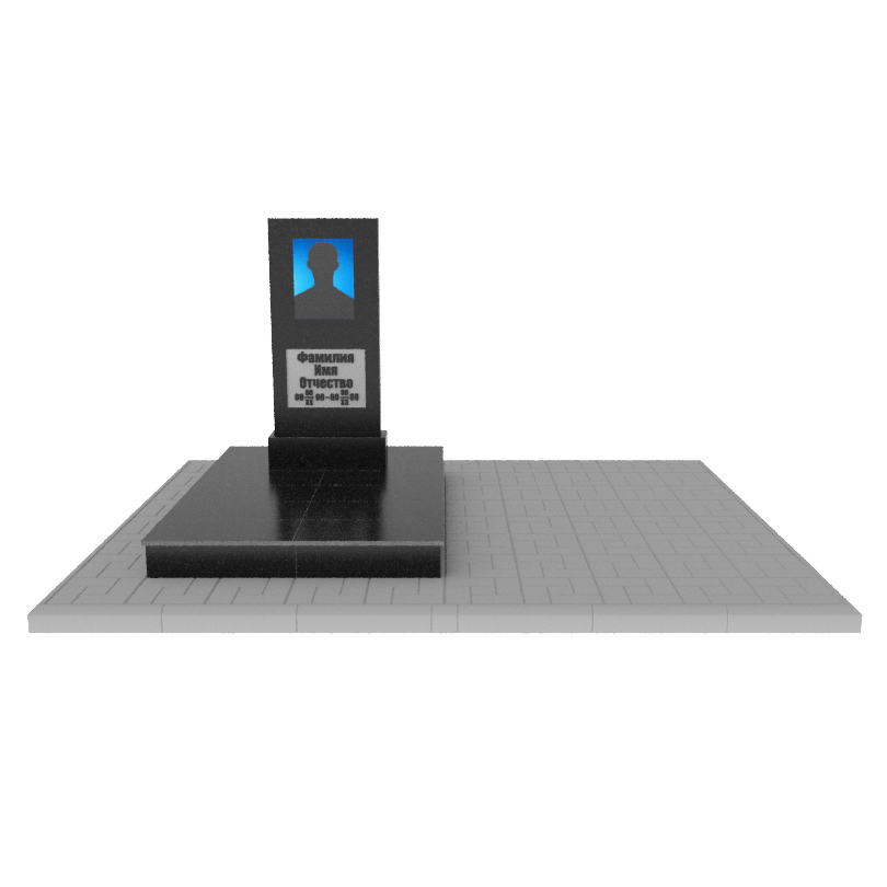 Памятник гранит Габбро Карелия 1100/500/70 № П с портретом, надписями, подиумом и тротурной плиткой