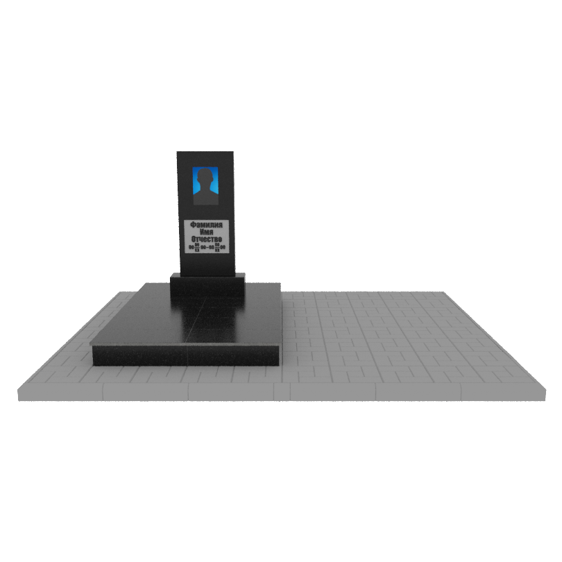Памятник гранит Габбро Карелия 1000/450/70 № П с портретом, надписями, подиумом и тротурной плиткой