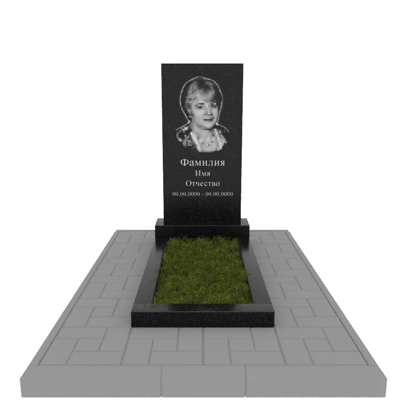 Памятник гранит Габбро Карелия 1000/500/70 с портретом, надписями и тротуарной плиткой